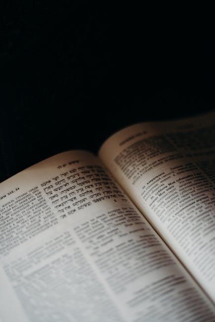 The Interlinear Bible is an indispensable resource for scholars and researchers, offering precise alignment of Hebrew, Greek, and English texts. It enables detailed word studies, with Strong’s Concordance integration, allowing for quick reference to lexical meanings. The literal translation provided alongside the original languages ensures accuracy, while the modern English translation facilitates comprehension. This tool is particularly valuable for analyzing linguistic nuances, historical contexts, and theological depths. Scholars can cross-reference the Hebrew and Greek texts with their English counterparts, ensuring a comprehensive understanding of the biblical text. The PDF download option makes it easily accessible for academic research and study. Whether for exegetical analysis or comparative studies, the Interlinear Bible is a time-saving and insightful resource for scholars seeking to delve deeply into the original languages of Scripture.